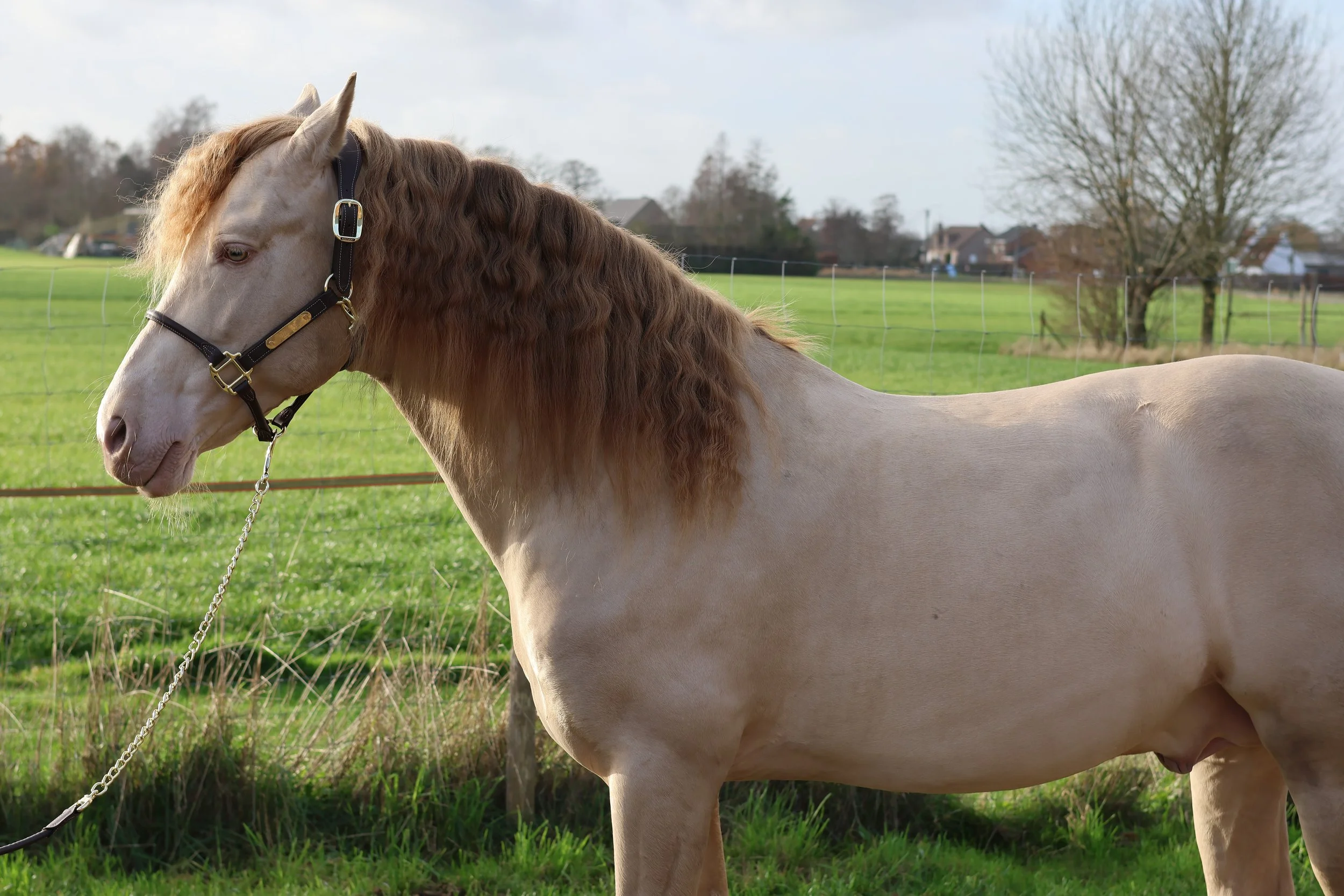 Julen SC is een 9-jarige perlino pre-hengst met een bijzondere genetische code en een hart van goud. Als vaste dekhengst vormt hij een essentiële pijler binnen onze fokkerij. Hij onderscheidt zich door zijn uitzonderlijk zachte en betrouwbare karakter, grote werkwilligheid en een harmonisch, correct gebouwd exterieur. Julen SC combineert elegantie met functionaliteit. Zijn bewegingen zijn lichtvoetig, in balans en voorzien van natuurlijke souplesse, wat hem tot een aangenaam en veelzijdig paard maakt.